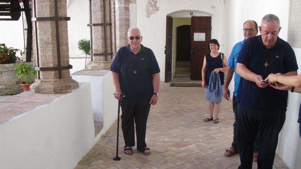 Attraverso la Giac conosce la figura di de Foucauld e da lì prende avvio il suo percorso vocazionale. “I Piccoli Fratelli di Jesus Caritas – spiegava – cercano di vivere il messaggio di frère Charles innanzitutto con una stretta vita fraterna, nutrita dalla preghiera di adorazione e dalla lectio divina quotidiana. Un servizio in diocesi secondo le nostre disponibilità e la richiesta del vescovo. Iniziai la mia avventura di piccolo fratello a Spello nel Convento di San Girolamo (ora è il ‘polmone spirituale’ gestito dall’Azione cattolica italiana), dove arrivai a mezzogiorno dell’Assunta del 1965, con due fratelli, uno più giovane e il secondo colpito dalla malaria cronica. Spello, con il convento francescano del ’400, doveva diventare, insieme ai 25 eremi sparsi per il Subasio, il luogo di informazione e formazione per far fare esperienza di preghiera privilegiando il silenzio e l’adorazione eucaristica. Così accadde. Per quasi venticinque anni fu un notevole riferimento spirituale ed ecclesiale per centinaia di giovani”.