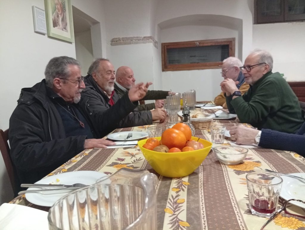 “Poi, continuando a passeggiare nel chiostro, da soli, mi raccontò del suo primo incontro con fratel Carlo Carretto: era arrivato a Spello con una curiosità disimpegnata, Carlo non c’era. Quasi sollevato, riprese il suo zaino e cominciò a incamminarsi verso la stazione, quando, alla fine del viale, vide avvicinarsi una macchina con Carlo che stava tornando. L’auto rallentò, scambiarono qualche parola, Carlo lo invitò con insistenza – come lui sapeva fare – a tornare indietro, solo per parlare un po’. ‘Da allora non me ne sono più andato’, concluse fr. Gian Carlo, con uno sguardo ancora luccicante. Capii il senso di quel racconto. Gli eventi straordinari accadono, bisogna coglierli al volo e non tornare più indietro”.